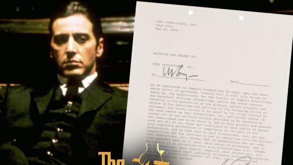 Pacino’s signature, in bold black ink, stands out here … and the document was drafted by Chal Productions and Francis Ford Coppola Productions.