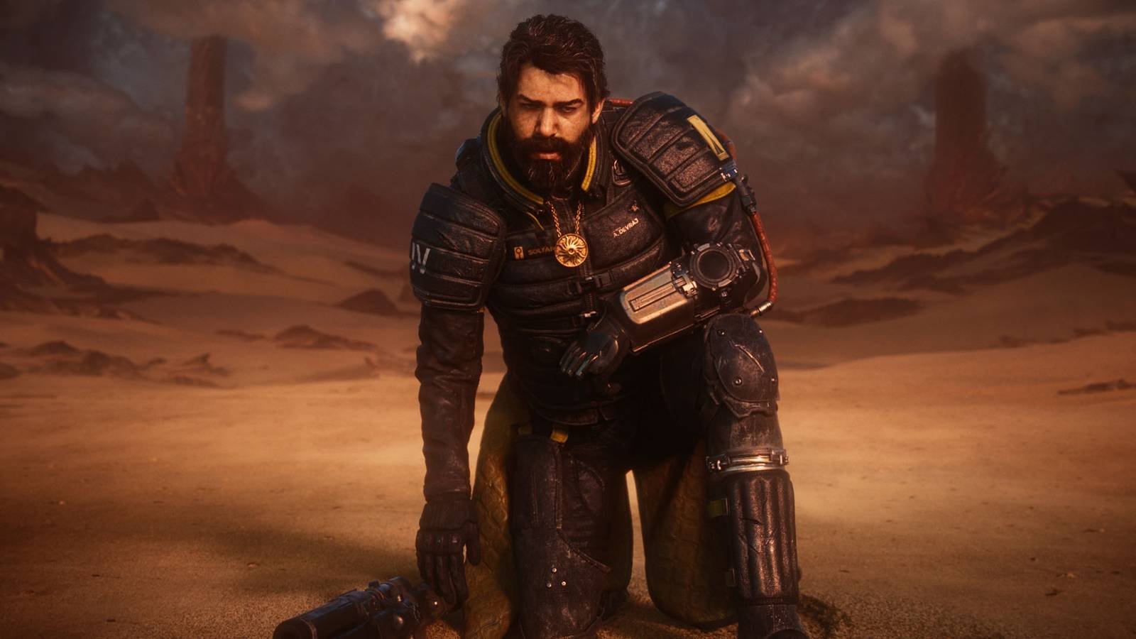 At the same time, the word “Carcosa,” which Chambers borrowed from Ambrose Pierce’s 1886 short story “An Inhabitant of Carcosa,” is connected to the unfamiliar and the wish of returning to where one belongs. In both trailers released by Housemarque, we hear Arjun talking to someone, saying he’s going to find them. Who is this dear person for whom the protagonist fights — and dies! — many times on a weird planet in order to find them?