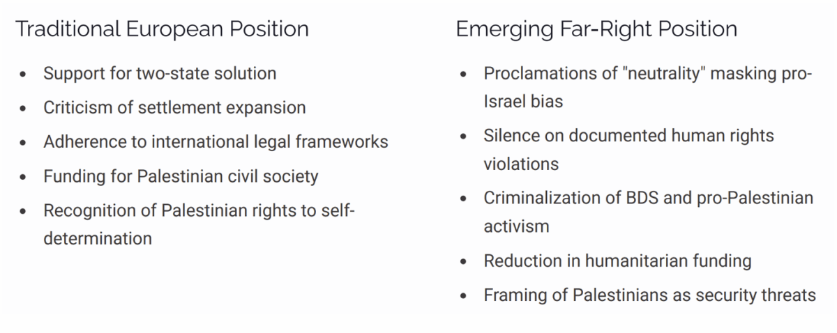 Figure 1 Comparative Table of European Positions on Palestine: Traditional vs Far-Right Shift.