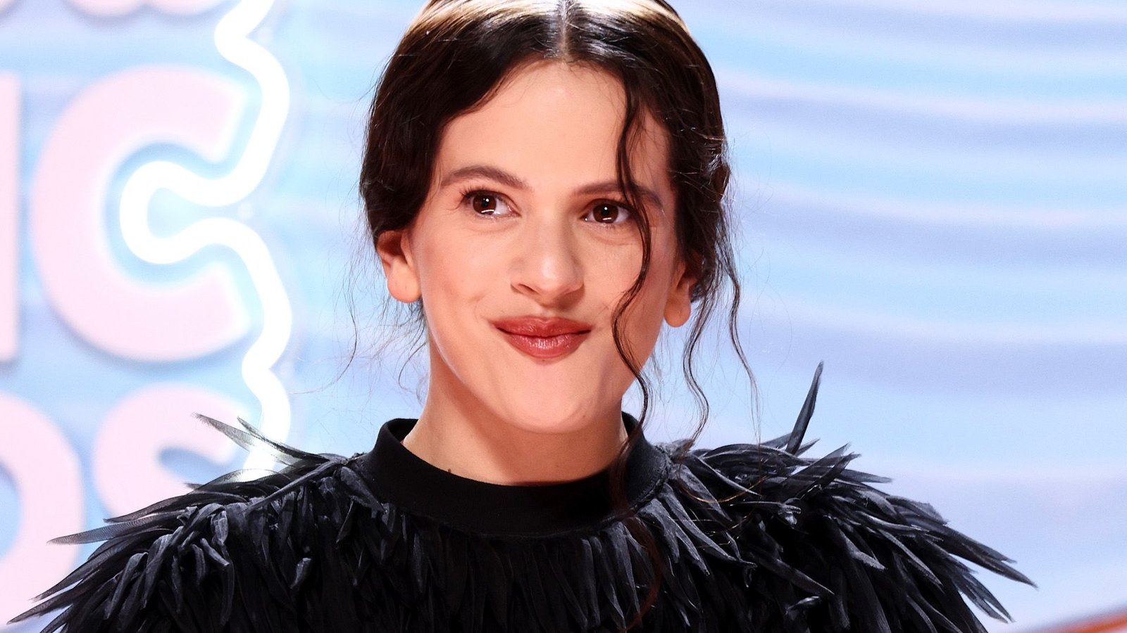 Last night, at the Los40 Music Awards in Valencia, Spain, Rosalía arrived in head-to-toe black, wearing a custom Balenciaga S/S 26 look. She wore a cropped feathered top with her midriff exposed and a long, low-rise taffeta skirt with a thin Balenciaga logo belt. The look was quite literally topped off with bejeweled bug-eye sunglasses, the headpiece covering her halo-dyed hair like a helmet.