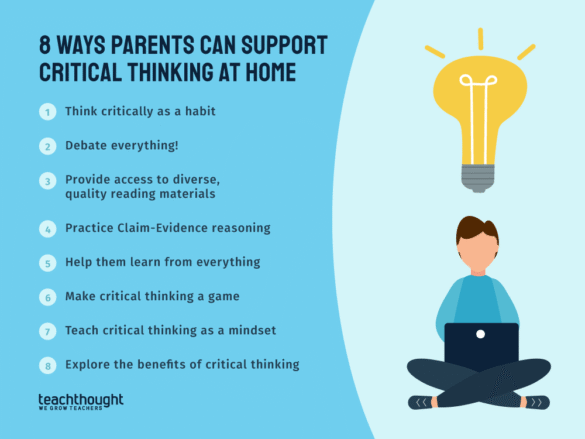 Practicing critical thinking in their ‘native environments–at home, with friends, reading self-selected texts, on social media, and more–is a useful strategy to build their cognitive muscles.