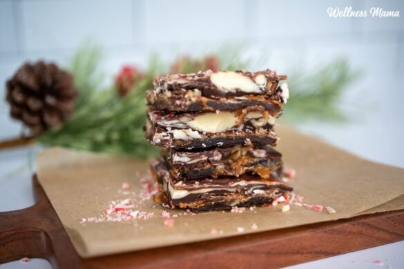 With Christmas just around the corner our family is in full holiday mode. That means hosting, baking, and making tasty treats like this peppermint date bark. It’s naturally sweetened with dates and is full of nutrients.